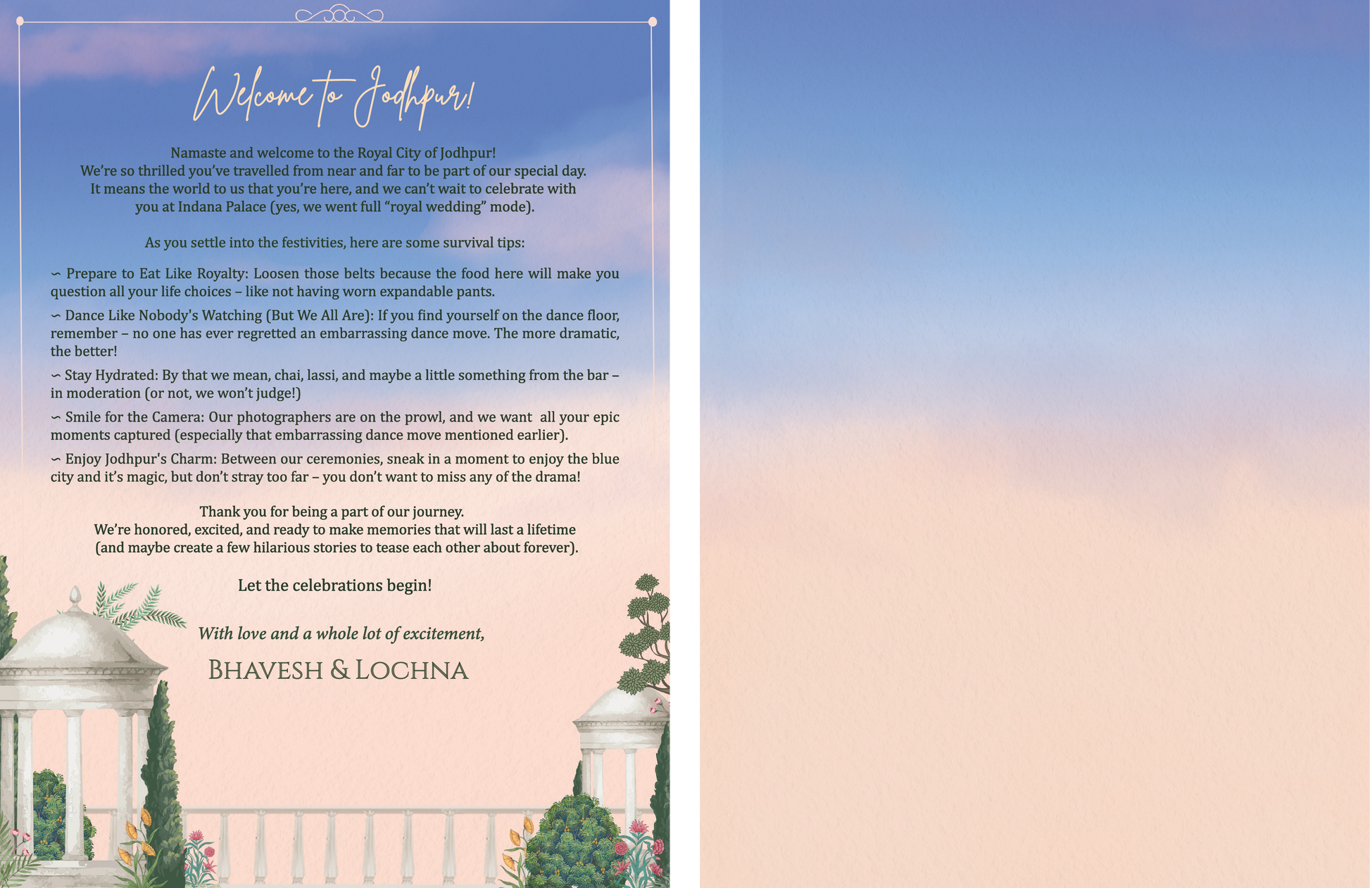 Set the tone for your celebration with our beautifully crafted wedding welcome note—an elegant way to greet your guests as they arrive for your big day. Whether tucked into a welcome hamper, placed on hotel room beds, or handed out at check-in, these cards offer a heartfelt first impression they won’t forget.