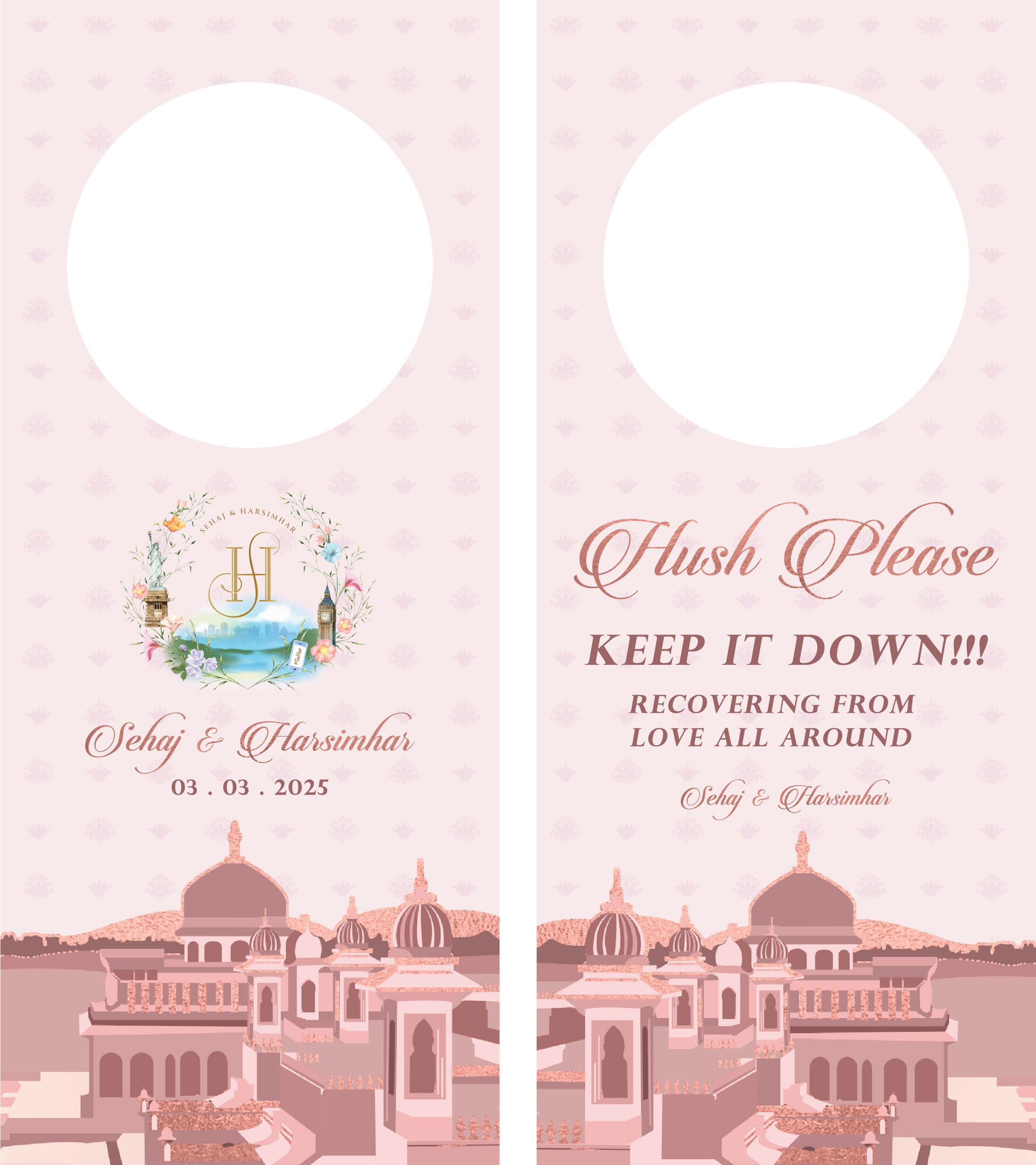 Treat your guests to a thoughtful and personalized detail with our custom wedding door hangers — a perfect addition to hotel welcome bags or destination wedding stays. Whether it's a "Do Not Disturb" after the dance floor or a warm welcome message, these hangers add a touch of fun and elegance to your celebration.