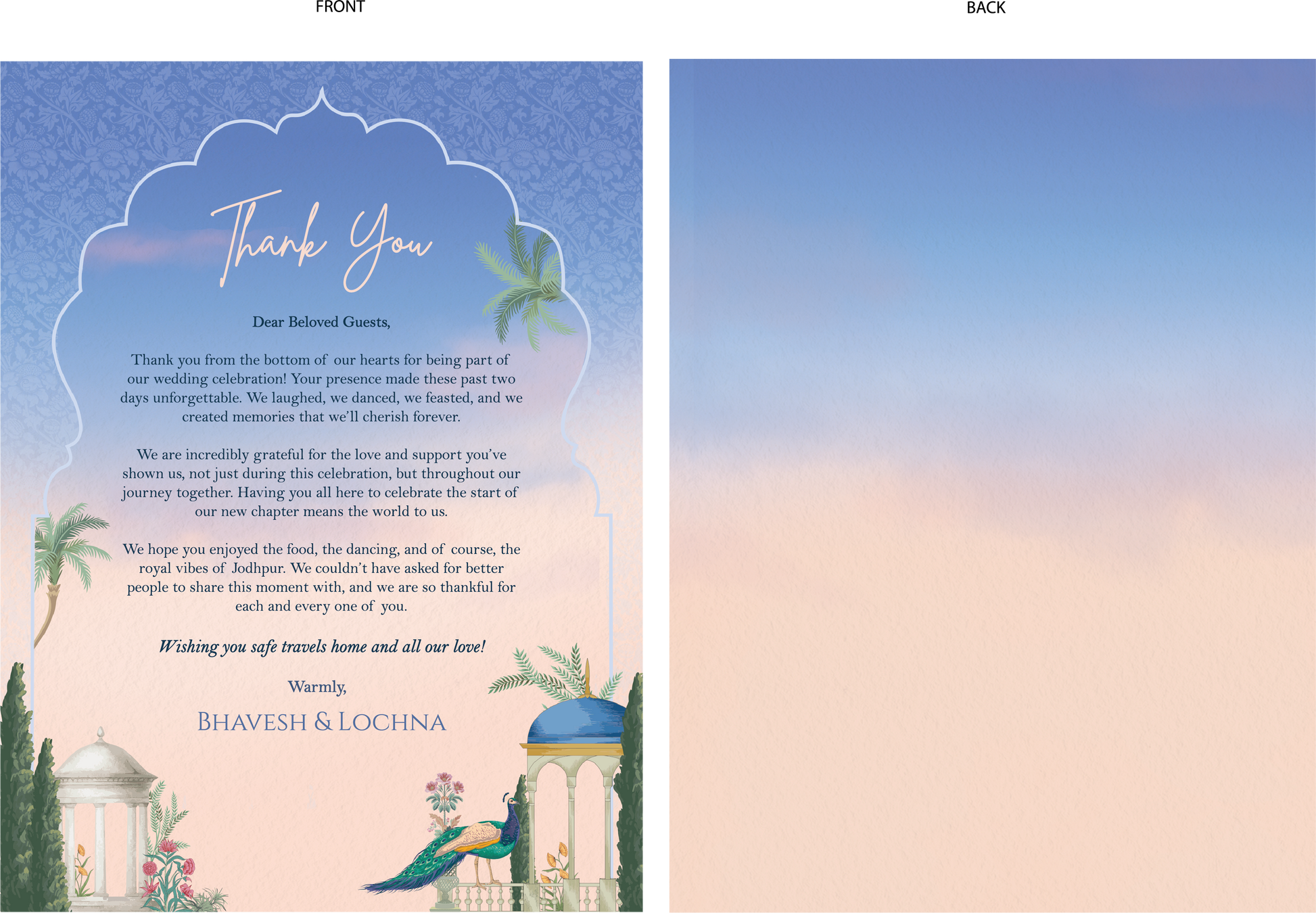 Express your gratitude with grace and style through our personalized wedding thank you cards. Thoughtfully designed to reflect the love and joy of your special day, these cards are the perfect way to thank your guests for their presence, gifts, and support.