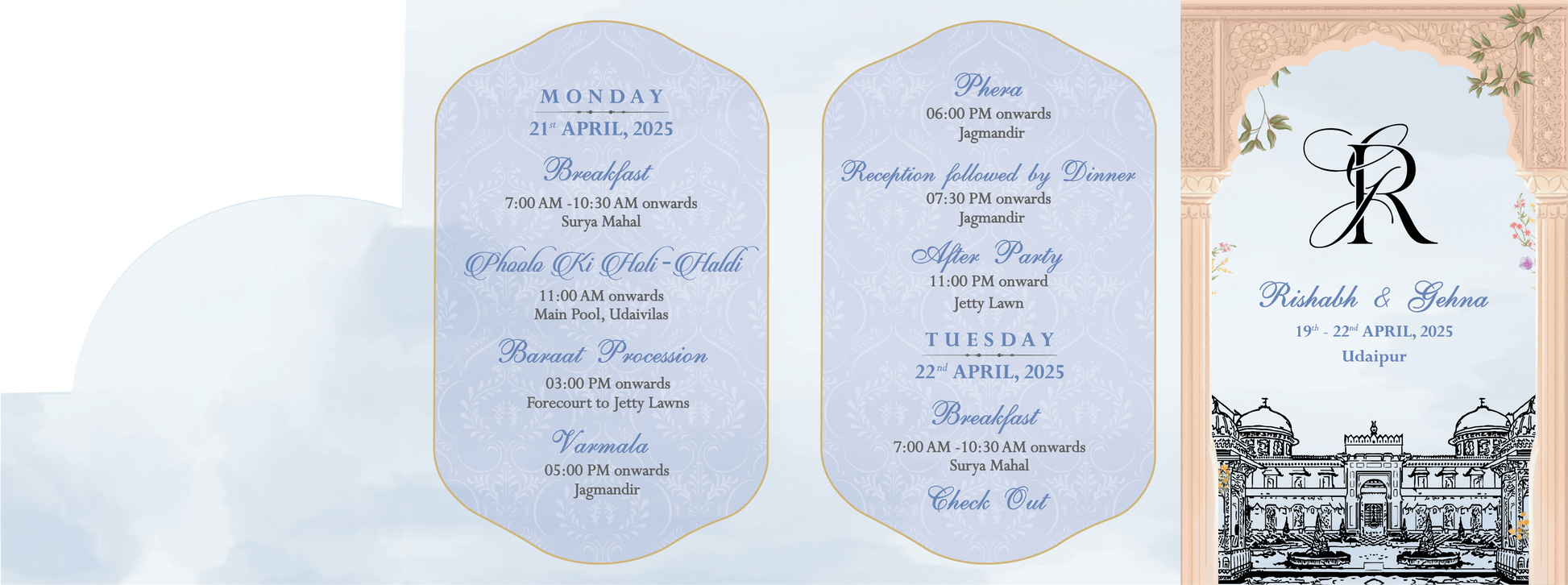 Help your guests stay informed and stress-free with a beautifully designed Wedding Pocket Itinerary — a compact, elegant schedule that outlines all the key events of your big day (or wedding weekend).
